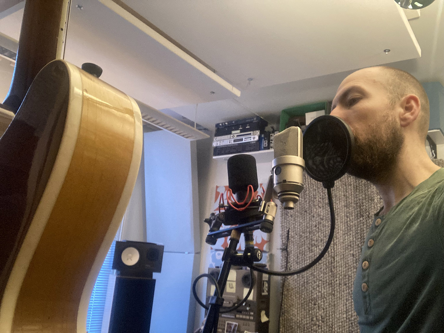 – Nå skal du høre. Annenhvert år har jeg Death Cab-kick. Under ett av disse kickene sto jeg på øverommet, og jeg tenkte, hva gjør Chris Walla nå? Jeg googlet, og der sto det at han bodde i Tromsø. Hva faen? Så jeg sendte ham en DM på Twitter, dette var lenge siden, før Elon kom og ødela alt. Jeg introduserte meg spurte hvorfor han bodde her, og om om han drev med musikk. Så svarte han meg, og oppfordret meg til å sende ham greiene mine. På den tiden hadde han flyttet til Trondheim. Han var fremdeles produsent for band fra indie-verden i USA, i tillegg til noen lokale ting. Så tok det tid på grunn av alt mulig pga covid, men etter mye om og men, skulle vi spille inn denne plata, og vi avtalte å møtes på zoom eller lignende. Jeg fortalte ham greia, viste musikken. Walla er verdens minst gatekeeper-aktige type, han er veldig opptatt av å sjekke ut ny musikk. Jeg vet ikke i hvor stor grad han ønsker å etablere seg i norsk musikkliv, men jeg tror han syntes det var litt gøy å jobbe med noen herfra. Det var også praktisk, sammenlignet med å for eksempel skulle dra til Seattle. Så han gikk med på en avtale som var utrolig gavmild, økonomisk sett. Jeg trodde ikke han skulle gjøre det, og det var en viktig validering for min del. Så sendte jeg sendte emo-demoene som jeg kalte dem, veldig skranglete ting preget av at jeg er sykt dårlig på å spille inn ting i Logic. Men han fikk heldigvis også et liveopptak der vi spilte alle fire, og så hadde vi dialog fram mot studio. Han ville gjøre så mye live som mulig og heller fargelegge ting etterpå. I studio var han super-påskrudd. Vi var i Martins kontrollrom på Paradiso, som er mindre enn de store mikserommene, men man har tilgang på de samme innspillingsrommene. Jeg tror vi hadde 16 linjer som vi kunne bruke, innspillingen fikk en fin undergrunnsfølelse. Han var sykt nøye, men lot oss styre, var ikke bastant, men hadde respekt for hvordan jeg ønsket det skulle være – og så kom han med mange innspill, tips, hvordan man skulle løse lydting. Vi prøvde masse forskjellige mikrofoner, vi ampet og re-ampet gitarene, vi prøvde trommene ute i det store rommet, som ikke brukes så mye i Paradiso nå for tiden. Mens jeg sto inne i tromme-boothen, spilte kontrabass og sang… det var fem dager med sykt gøy, kreativt arbeid. En av dagene kunne ikke Axel være med i studio – da skulle vi spille inn “Hold øyene lukka”. Vi spilte inn første delen uten trommer, på klikk. Så kom vi på, kan vi ikke bruke trommemaskin? Vi fant noe gammal digital drit som lå i studioet og satt og jobbet med det. Så kom Axel, og etter første refrenget kommer han og tar over for maskinen, ødelegger den. Det er et av høydepunktene på plata.