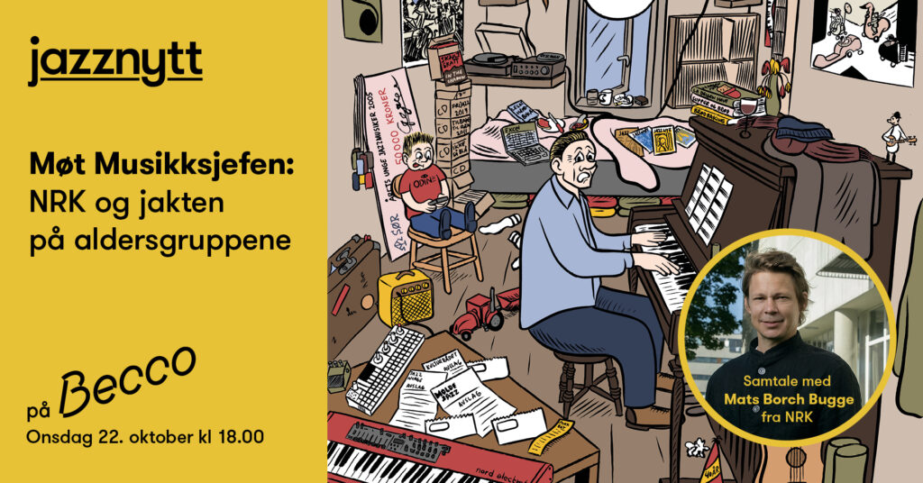 Et ekstra varsku: Det er mange av dere som sikkert har meninger om NRKs omlegging av musikkdekningen sin, og på Becco 22. oktober klokka seks inviterer vi Mats Borch Bugge til en samtale. Den vil særlig fokusere på hvorfor alders-målgrupper er så HELSIKKES viktige for NRK. Går det på bekostning av andre interessefellesskap, som for eksempel en jazzinteresse (eller en hvilken som helst annen kulturinteresse) også er? Jazzlivet er jo ganske generasjonskryssende, hvordan kan dét forenes med denne tankegangen? Og hvilke utfordringer er det NRK står ovenfor, og som vi som står på utsiden og kaster viskelær simpelthen tar for lett på?