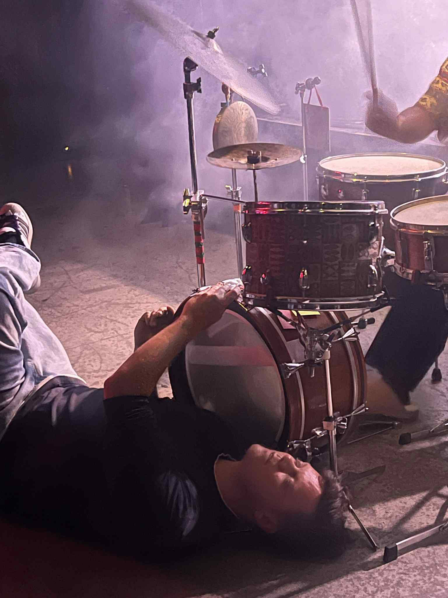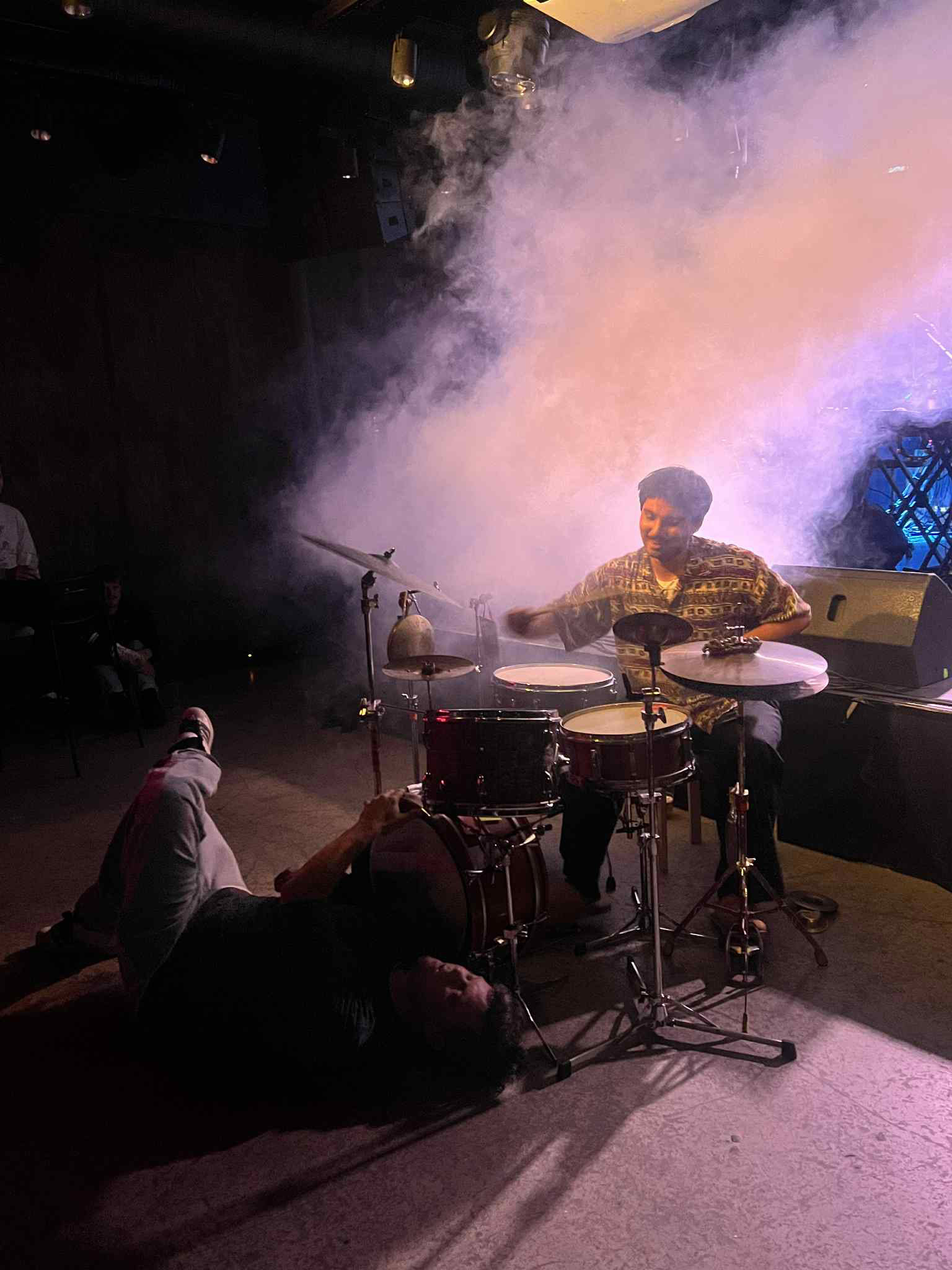 Før vi går til konsertoversikten deler vi noen bilder fra minnekonserten for Axel Skalstad på Goldie forrige lørdag. Der spilte blant annet de to unge Kongsberg-trommeslagerne Trym Norum Graven og Albert Baker. Basstrommen løp løpsk under Tryms solosett – da er musikkvenner godt å ha, i dette tilfellet Marius Ergo: