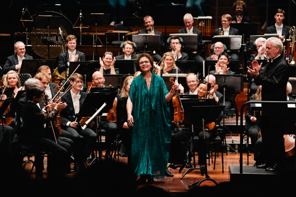 «Er du anmelder?», spurte den flotte damen ved siden av meg da hun oppdaget at jeg tok noen ytterst få og kjappe notater i pausen. Hun sa det med beundring, og det var en sjelden følelse. Vi hadde nettopp sett noe som var fett nok i seg selv men som til slutt opplevdes som en oppvarming. Béla Bartók (1881–1945) klarte ikke å fullføre sin bratsjkonsert på tampen av livet, men ettertidens forskere har gjort flere forsøk. Dette er en litt mer omgjengelig type musikk enn hva mange kanskje assosierer med ham. I smaragdgrønn kjole, som om hun var fruen fra havet, kom Tabea Zimmermann inn på scenen som solist. Hun virket som en streng professor, som hun vel også er, men glimtet til underveis og snudde seg faktisk mot fiolinbauta Elise Båtnes og smilte lystig under et parti hun satte ekstra pris på. Hun gnisset og gned, noen ganger riktig så grovt. Som når man gnir to pinner mot hverandre når man forsøker å lage bål i skauen. Hårene på buen ble gnisset av og hang og slang før hun resolutt rev dem av og fortsatte. Hun ble klappet inn mange ganger, og hun så rett og slett overlykkelig ut i sine korte mørke krøller. To ekstranumre ble det, et ganske hakkandes et der hun spilte kjapt og intenst, som en slags variant av Ediie Van Halens «Eruption» eller Snorre Ruchs true Norwegian black metal aka skogsflamenco. Det virket som om flere i orkesteret smilte litt stivt, men det meste løsnet da neste ekstranummer var av det smektende slaget.