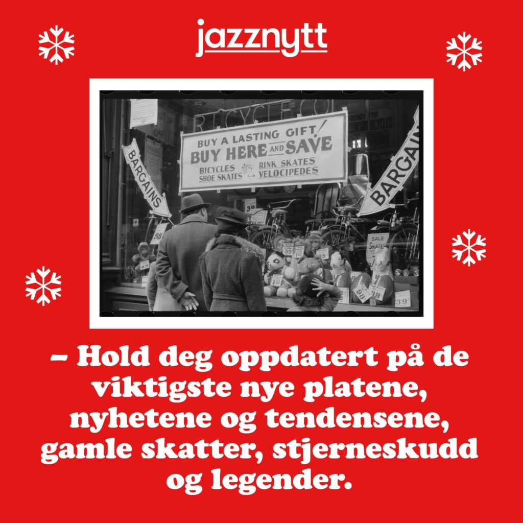 Det ferskeste nummeret av Jazznytt har kommet fra trykken, og skal ha landet i postkassene til dere som er våre abonnenter. Det må feires med en liten juleavslutning! Men det er mer! På Jazznytt-kontoret knaker Billy-hyllende faretruende under vekten av gamle årganger fra år som 2017, 2018 og 2019. Der blir de stående, hvis vi ikke gjør noe. Om det er én ting som er vanskeligere enn å selge ferske (jazz-)magasiner i 2025, så er det å selge utgaver som er noen år gamle.