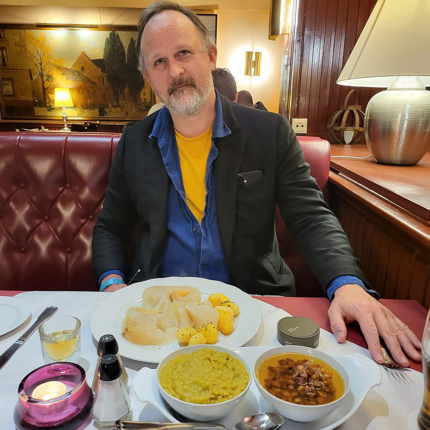John Jeremiah Sullivan tester lutefisken på Schrøder. Foto: Audun Vinger