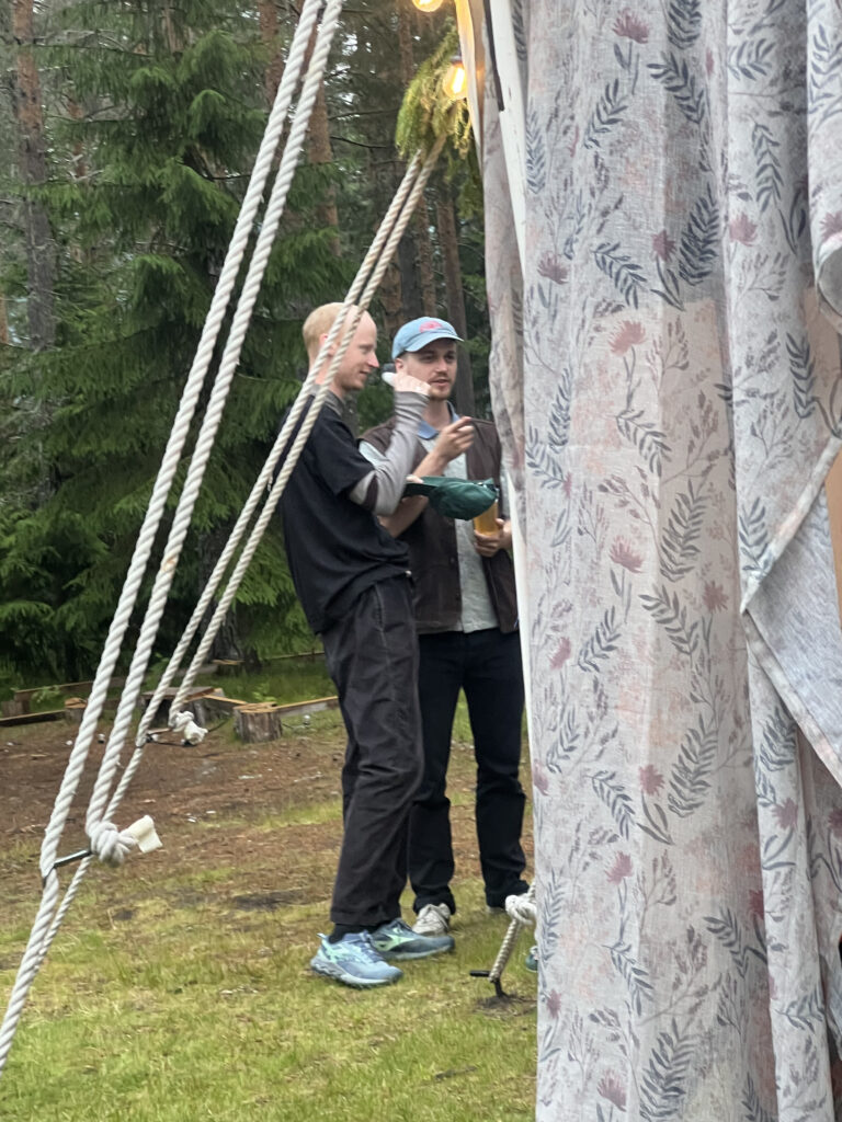 Hans P. Korstad og Magnus Skavhaug Nergaard venter på å gå på før Reolô-konserten på Motvind. Snikfoto: Cornelia Kristiansen