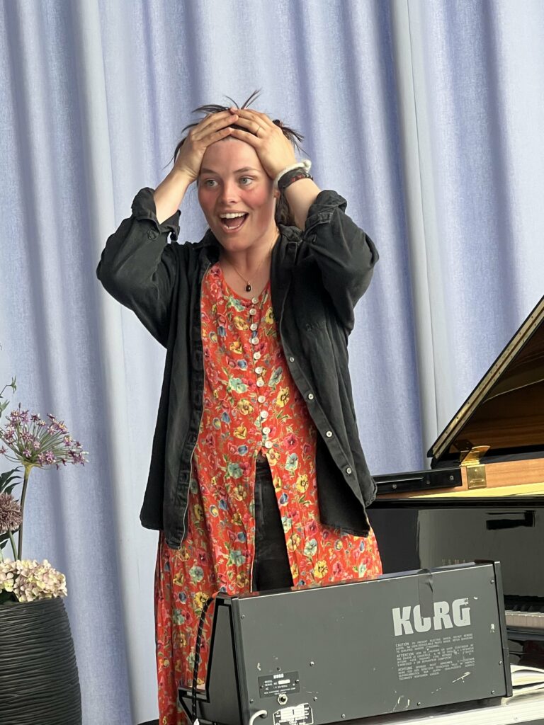 Anja Lauvdal etter endt konsert – det var varmt, ja. Foto: Cornelia Kristiansen
