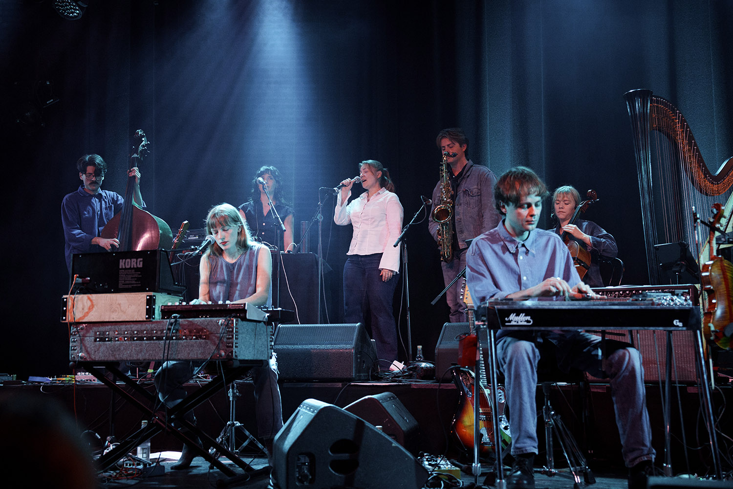 — Hehe, det er gøy! Det «gamle» live-bandet består av en slags kjerne som er Oliver, Nicolas og jeg. Etter å ha testet mange ulike besetninger har vi landa på en ganske fin gjeng når vi gjør større jobber som fyller ut lydbildet og bringer mange ulike farger og kvaliteter til musikken. Nå er det kjempekick å gjøre konserter med 8 stk – hvor vi har rikelig med tangenter, vokal, stryk og saksofon. Jeg har også gjort noen jobber bak tangentene sammen med Anna og Håkon, som har vært veldig gøy og utfordrende.