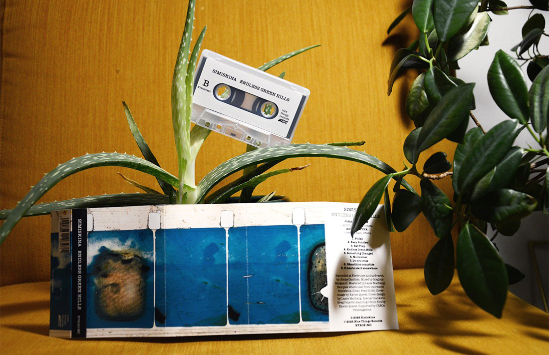 Det kom helt overraskende en kassett i posten. Når slikt inntreffer blir man glad, og man blir nysgjerrig, og åpner dekselet. I alle fall når avsender er Adrian Myhr – den lure bassisten som er å høre i så mye åpen musikk fra de fleste tenkelige verdenshjørner og tradisjoner og ennå ikke påtenkte ideer. Stundom spiller han også vanlig-jazz, men ikke spesielt ofte. Jeg ble spesielt ivrig da jeg forsto at kassetten inneholdt ny musikk fra Simiskina, en duo han har med det belgiske vidunderet Jonas Cambien, kjent fra prosjekter som egen trio og Maca Conu. Forrige gang vi hørte noe fra dem var hele ni år siden, da de utga et akustisk album for Pedro på selskapet Clean Feed. Tuta har en annen låt nå på kassetten (og digital-albumet) Endless Green Hills, utgitt av driftige nice things records i hovedstaden.
